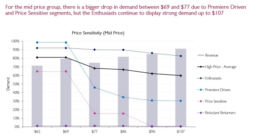 Price was the most important factor in the decision-making process, but there was strong demand all the way to $107 for a standard full-price ticket